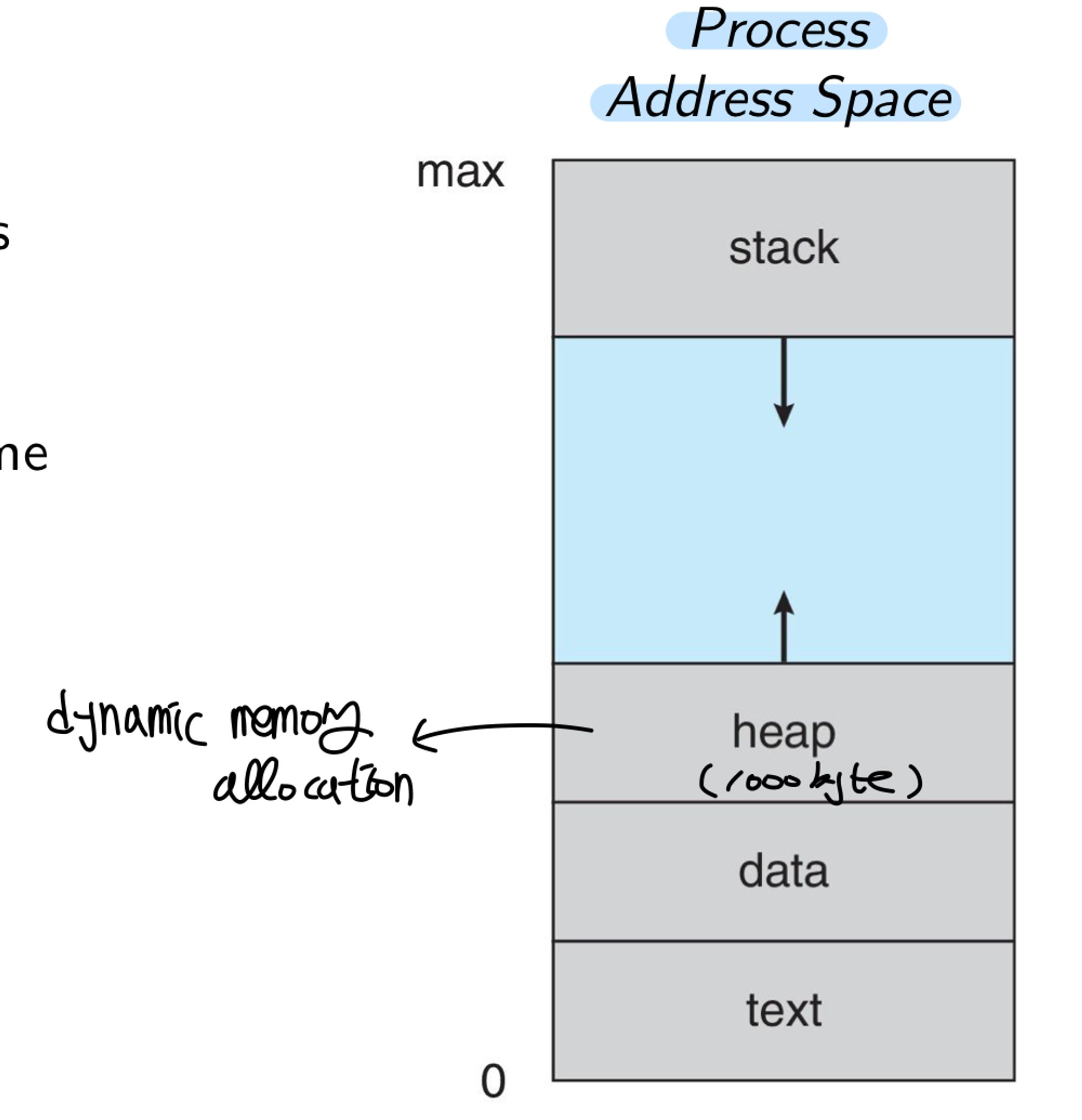 fork(): ์ ํ๋ก์ธ์ค ์์ฑํ๋ system callexec(): fork ์ดํ ํ๋ก์ธ์ค ๋ฉ๋ชจ๋ฆฌ ๊ณต๊ฐ์ ์ ํ๋ก๊ทธ๋จ์ผ๋ก ๋ฐ๊ฟ์ฃผ๋ system callwait(): parent ํ๋ก์ธ์ค๊ฐ child ํ๋ก์ธ์ค์ ์ข ๋ฃ๋ฅผ ๊ธฐ๋ค๋ฆฌ๊ธฐ ์ํด ์ฌ์ฉํ๋ system call- code example