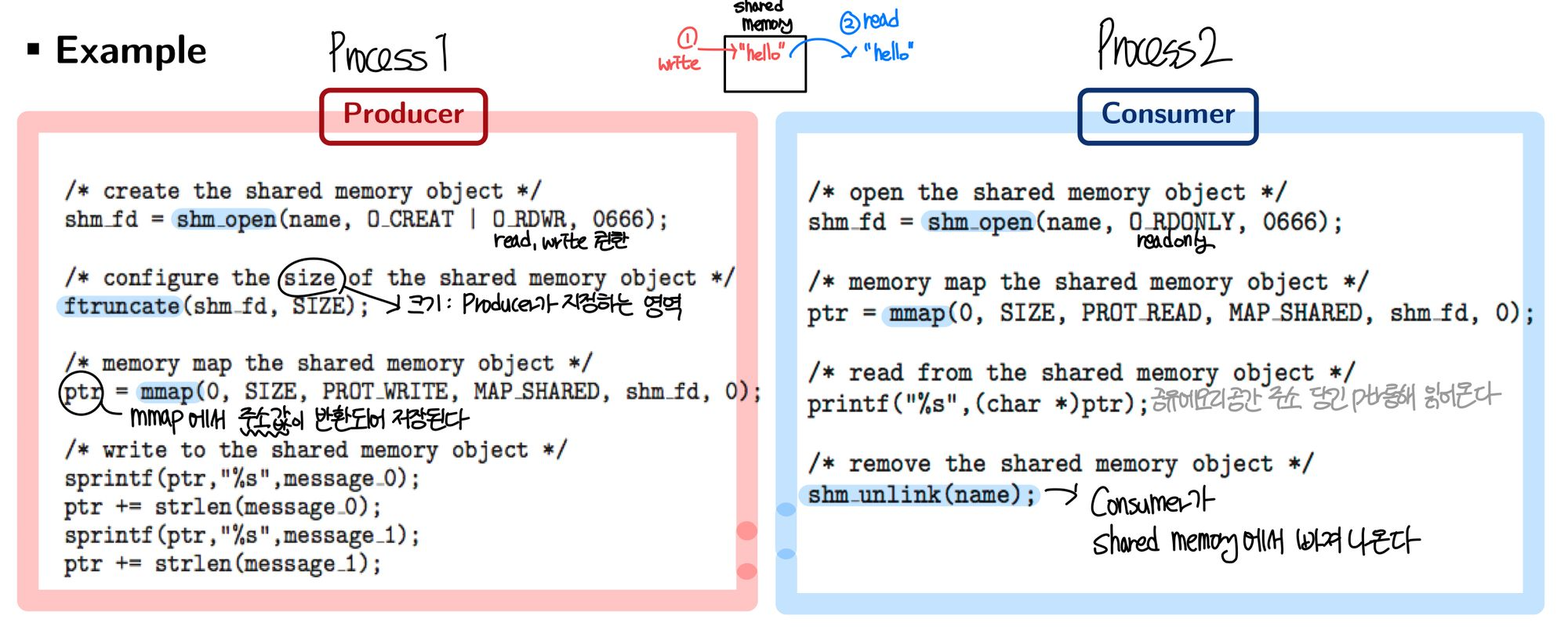 - shared memory object์ ํ์ผ ํฌ์ธํฐ์ ๋ฉ๋ชจ๋ฆฌ๋ฅผ ๋งตํ