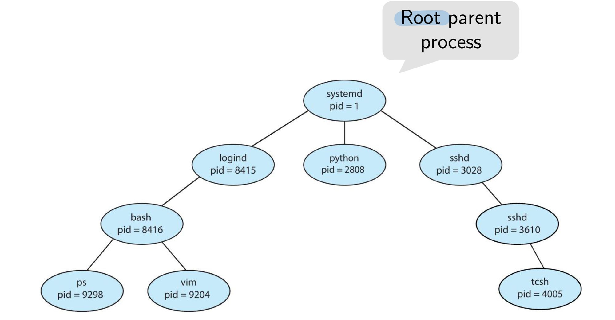 - parent๊ฐ ์ข ๋ฃ๋๋ฉด child๊ฐ ์กด์ฌํ ์ ์๊ฒ (→ ๋ช๋ช ์์คํ ์์๋ ๋ถ๋ชจ ์์ด ์์ ํ๋ก์ธ์ค๊ฐ ์คํ ๋ ์ ์์ด์ ์ข ๋ฃ)