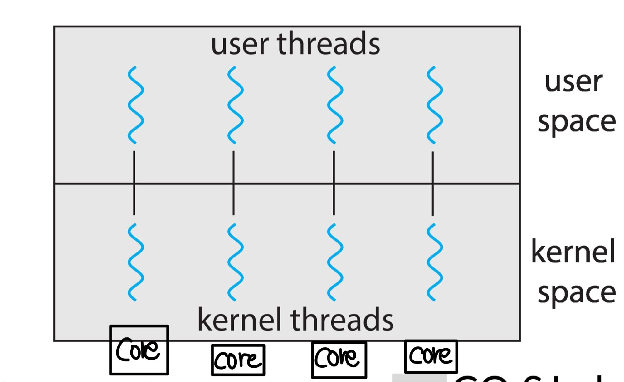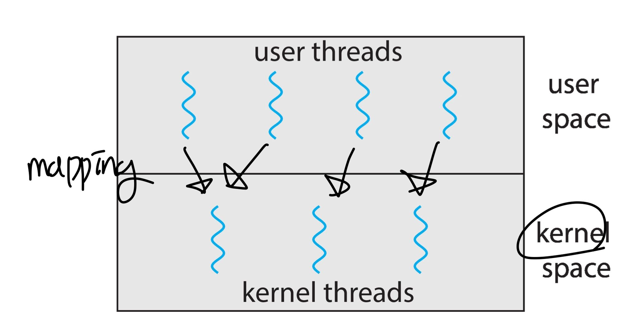์ฆ, OS์์ ์ด๋ค kernel thread๊ฐ ๋์๊ฐ์ง ๊ฒฐ์ ํด์, user์์ mappingํด์ฃผ๋ ๋ฐฉ์์ด๋ค.