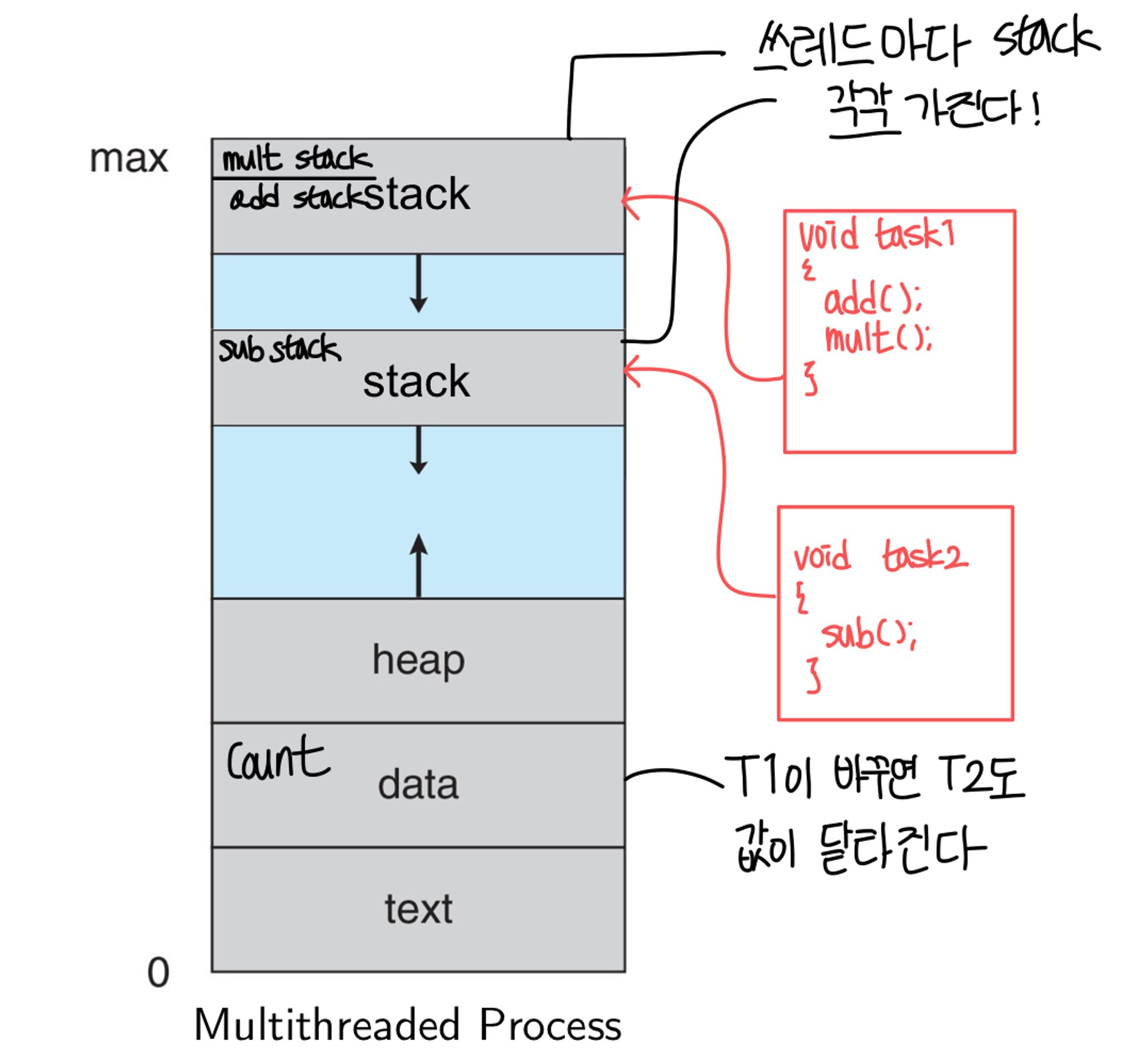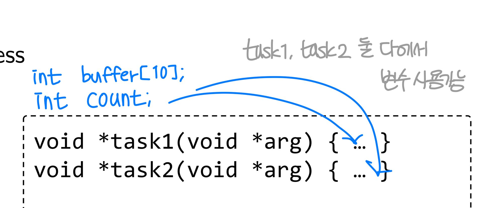 - ์ ์ ์คํ์ด์ค( =ํ๋ก๊ทธ๋๋จธ ์ ์ฅ์์) → Pthreads๋ก ์ฐ๋ฆฌ๊ฐ ์ง์