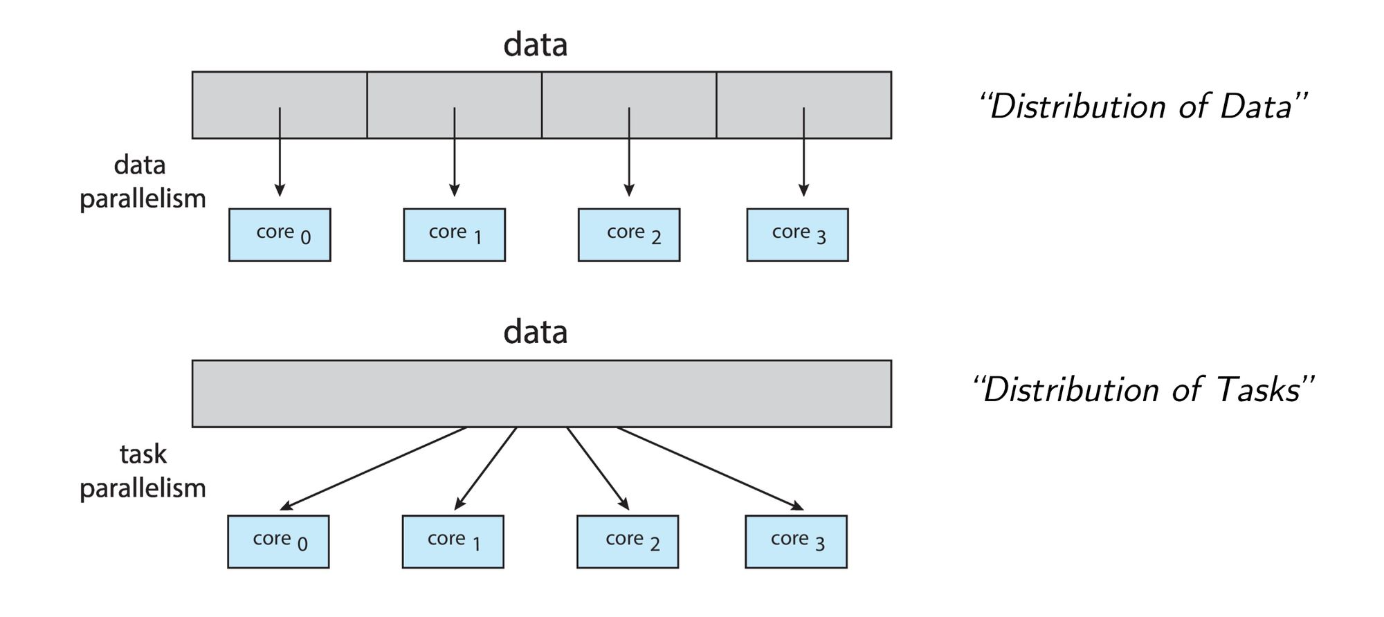- Parallelism : ์ค์ ๋ก(physically) ๋ค๋ฅธ ์ฝ์ด์์ ๋ค๋ฅธ ํ ์คํฌ๊ฐ ๋์๊ฐ๋ ๊ฒ