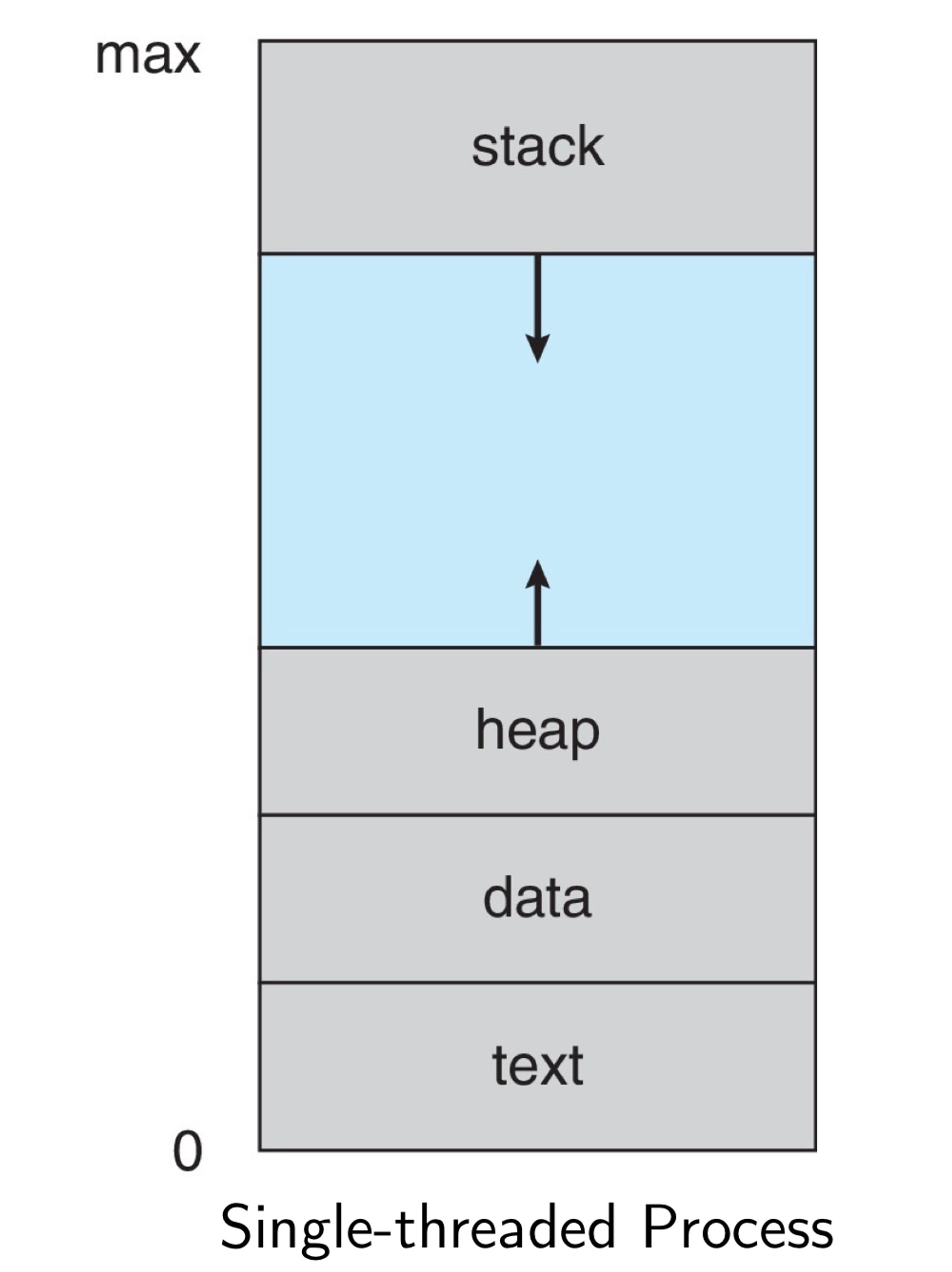 ์ค๋ ๋๊ฐ ํ๋์ผ ๋์, ์ฌ๋ฌ ๊ฐ์ผ ๋ ํ๋ก์ธ์ค์์ ๋ฉ๋ชจ๋ฆฌ๋ฅผ ์ด๋ป๊ฒ ์ฌ์ฉํ๋์ง๋ฅผ ๊ทธ๋ฆผ์ผ๋ก ๋น๊ตํด๋ณด์.
